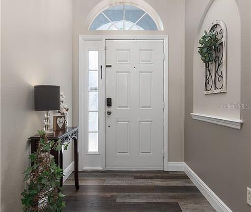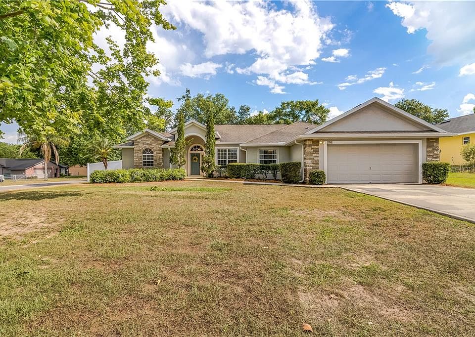 FANTASTIC ONE-OWNER HOME ON OVER QUARTER ACRE WITH NO HOA! This 4 bedroom, 2 bath home has been freshly painted outside. Step inside to an open floor plan with volume ceilings. French doors open to an office / den with a large window for lots of natural light. The kitchen features a double oven and granite counter tops with plenty of space for the chef in your family. Two nice-sized bedrooms and a hall bathroom are off the hallway. The fourth bedroom is just off the kitchen. The large master bedroom also features volume ceilings and en-suite with dual sinks, garden tub and his / her walk-in closets. A closed in and screened lanai opens to the fenced in backyard with an above ground pool. All NEW vinyl plank flooring and carpet throughout. A/C is 2016. NEW gutters. This charming home won't last long! Schedule your appointment today!