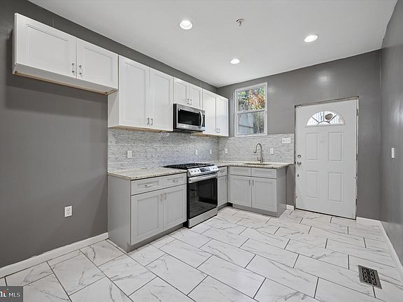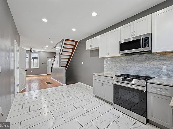 Beautifully Renovated End-Unit Row Home Where Modern Luxury Meets Classic Charm!!!!! Welcome home to this stunning renovated end-unit row house, perfectly blending modern finishes with timeless design. Step inside and be greeted by an open, airy floor plan adorned with rich hardwood floors, fresh gray paint, and sleek iron railings that add a touch of contemporary elegance. The chef-inspired kitchen features granite countertops, stainless steel appliances, a designer backsplash, and ample cabinet space—ideal for both everyday cooking and entertaining guests. Recessed lighting and updated black ceiling fans enhance the home’s stylish ambiance throughout. Upstairs, you’ll find 3 spacious bedrooms with oversized closets, providing plenty of storage and comfort. The bathrooms are beautifully updated, including a half bath with an LED lighted mirror and upgraded marble tile flooring for a touch of luxury.The fully finished basement offers additional living space perfect for a family room, gym, or office—complete with a dedicated laundry area for added convenience. Outside, enjoy your fenced rear yard, ideal for private gatherings, pets, or relaxing evenings. With central air, modern fixtures, and thoughtful upgrades throughout, this move-in-ready home delivers the perfect combination of comfort, style, and functionality—all in a desirable location close to shopping, parks, and major routes. Schedule your appointment today!!!!!