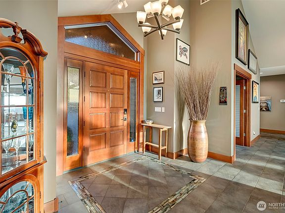 A rare offering in Rock Ridge. This exquisite custom home captures commanding views of the Rosario Straight, vibrant boating activity, and dramatic sunsets. The San Juan Islands are beautifully showcased in every direction, offering an unforgettable backdrop. Main-level living features a chef’s kitchen, private office, guest suite, and a grand owners’ retreat with a relaxing spa bath. A covered deck on the main level with built-in gas grill invites seamless indoor-outdoor living. Sophisticated interiors with exceptional materials and exquisite craftsmanship throughout. The lower level offers two en suite bedrooms, a 10-seat theater with projector and screen, and a custom patio with hot tub. An extraordinary setting and an exceptional home.