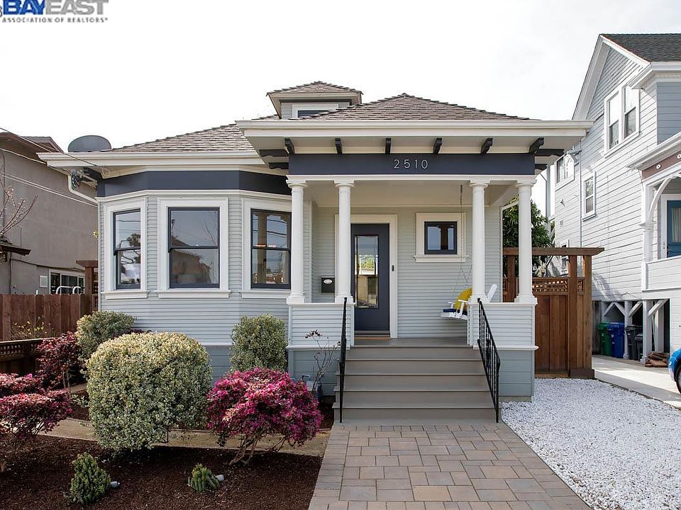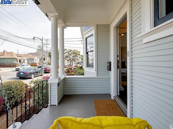 Located in Alameda's sought-after East End just blocks to downtown Park St and close to Otis Elementary School + Krusi Park, this enchanting 1910 Colonial Revival Cottage will charm vintage home lovers with its elegant original features combined with tasteful remodels and upgrades. With exceptional appeal both inside and out, this single-level home offers 2 bedrooms, 2 full bathrooms, formal living and dining rooms, a thoughtfully remodeled kitchen and a full attic. Vintage details include 9-foot coved ceilings in most rooms, oak + douglas fir floors, tall wainscoting, picture rails, and a stunning dining room fireplace with the original faience tiles and a mirrored overmantel surround. Remodeled kitchen and bathrooms, new light fixtures, freshly painted interior, refreshed + new landscaping. The private backyard has a paver patio, redwood fencing, fairy lights and raised veg/garden beds. Central AC + newer roof, foundation, plumbing and furnace. Sewer lateral/gas shutoff in compliance. Wonderful location just minutes to South Shore Center, Trader Joe's, Alameda beach, the SF Ferry & OAK. Perfection!
