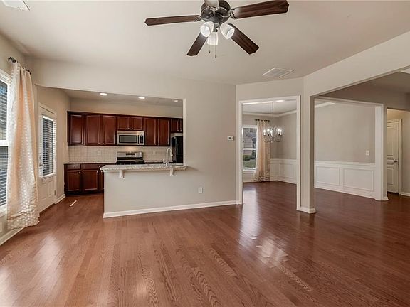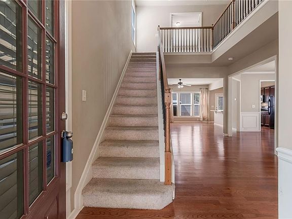Location, location, location! Close to abundant shopping, including Super Target, Walmart, Patel Brothers, Big Creek Greenway, numerous restaurants, and more. A grand two-story foyer welcomes you home to hardwood floors throughout the main level. Spacious kitchen with stone countertops, stained cabinets, black/stainless appliances include the refrigerator! Enjoy the view of the great room from the kitchen, perfect for entertaining. Elegant dining area and a great room featuring a wall of windows and a fireplace. Upstairs, the expansive owner's suite includes a bathroom with dual sinks, a separate tub and shower, tile floors, and a walk-in closet. Family-friendly level lot with many welcoming neighbors. Vibrant community, perfect for living and relaxing with a community swimming Pool! Ready to quick occupancy.
