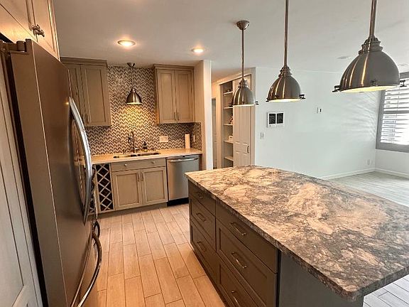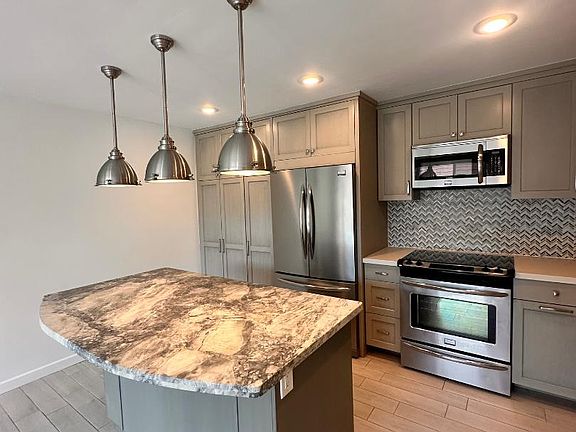 Fresh new paintsFree standing eat-in islandItalian tilesHerringbone backsplashHoned quartz countertopsHigh-end finishesFrigidaire appliances