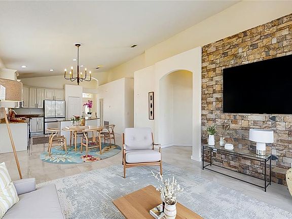 Welcome to your Florida oasis! This beautifully maintained 3-bedroom, 2-bath pool home offers the perfect blend of style, comfort, and functionality. Featuring an open concept split floor plan, the layout is designed for modern living—ideal for both entertaining and everyday comfort. Step inside to find gorgeous porcelain tile flooring throughout, creating a seamless and elegant flow from room to room. The fully renovated bathrooms boast luxury finishes that feel like a spa retreat, with sleek fixtures and sophisticated design. Outside, enjoy the Florida lifestyle year-round in your screened-in pool enclosure—a private haven for relaxing or hosting family and friends. Whether you’re lounging poolside or cooking up dinner in the open kitchen with one year old Samsung refrigerator, this home has everything you need to live comfortably and in style. Situated in the popular golf course community. Roof 2020, AC 2022, Bathroom renovations 2018, 6 panel solar pool heating 2016 Move-in ready and thoughtfully updated, this home is a must-see! For virtual tour use this link: https://tour.vht.com/434476767/idxs
