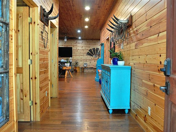 Escape to your own private retreat on 3.34 acres with this beautifully crafted 3 bedroom, 2 bath home designed for comfort, energy efficiency, and outdoor enjoyment. Surrounded by deer, quail, doves, and natural beauty, this property offers excellent recreational and hunting opportunities right out your back door. The home is fully insulated with foam insulation and equipped with solar panels for low energy costs year-round. Inside, enjoy the rustic elegance of knotty pine cabinets and prefinished knotty pine interior walls imported from Michigan, adding warmth and charm throughout. The kitchen is a dream for cooking enthusiasts, featuring a unique island made from barrels with granite countertops, a gas stove, and plenty of space for prepping and entertaining. The open living area includes a cozy gas-burning fireplace and a spacious 10x50 screened-in back porch that’s perfect for a game room, entertaining, or peaceful relaxation. Included are custom end tables handcrafted from trees harvested right off the property, adding personal character and storybook charm. The home includes a 2-stage 16 SEER HVAC system for year-round comfort and is wired for a generator that powers lights and the fireplace for added peace of mind. Storage and parking are abundant with a 25x30 metal garage with roll-up door, a 25x25 carport, a 14x30 boat or RV carport, and a dedicated 40x16 covered RV parking area. Whether you’re looking for a quiet homestead, a weekend getaway, or a property that offers space to play and unwind, this home feels like a vacation escape every day. Experience the perfect balance of rustic charm, modern efficiency, and wide-open space in this one-of-a-kind property.