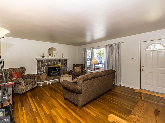 This Stone Ranch is waiting for it's SECOND owners! Hardwood floors throughout, 3 bedrooms, 1 full bath, Living room with stone fireplace (gas insert), dining room with door to back patio and kitchen with access to oversized 2 car garage. Downstairs is plenty of room for a family room - currently set up with laundry area, unfinished room, work room and a hair salon with full bathroom and outside entrance. The main house has plenty of storage with pull down attic stairs and there is also attic storage above the garage.