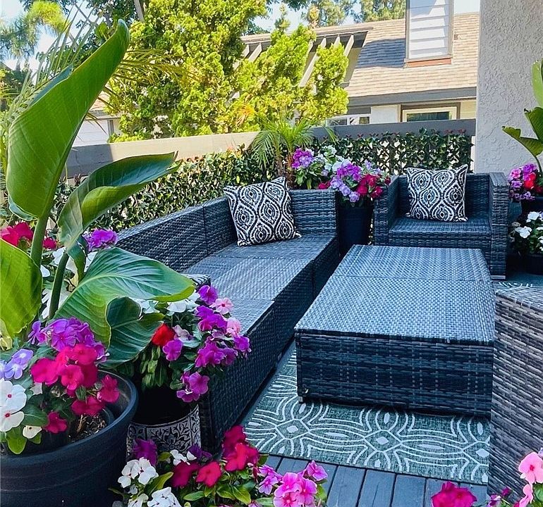 Completely newly remodeled, turnkey home in the prestigious gated Woodlake community. Rare opportunity to own a top level (no one above), end-unit - this is a Premium private location! Adjacent to world renowned South Coast Plaza, Segerstrom Performing Arts Center and central to OC. Enter this open floor plan home to soaring ceilings, wide plank laminate flooring, fireplace with custom fire glass, and new recessed LED lighting throughout. Thoughtfully designed with pride of ownership. The remodeled contemporary kitchen features all new stainless appliances, custom soft-close cabinets with built-in organizers, and elegant Prada Gold quartz counters. The kitchen nook area opens up to a serene patio deck great for relaxation, accessible to the second bedroom as well. The stunning Master Bathroom features a spacious vanity area with lots of storage, custom cabinets built with extra drawers, elegant lighting fixtures, a sunken tub and shower, and skylight providing beautiful natural light. The remodeled second bathroom features a new vanity, new mirror, quartz countertop, and a walk-in shower. The spacious living room with vaulted ceilings opens up to a large, gorgeous wood deck expanding the living space, perfect for entertaining or relaxing with a tranquil stream below. Ample storage throughout including an attic. Two assigned carport spaces next to the building and plenty of guest parking. Ideal location with ponds, water features, waterfalls, and mature trees throughout the community. HOA amenities include: pool, spa, maintenance, water, trash, termite and outside electricity. Hurry to see this beautiful, turnkey home!