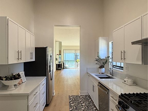 Remodeled contemporary kitchenSerene patio deckSoaring ceilingsPrada gold quartz countersOpen floor planStainless appliancesWide plank laminate flooring