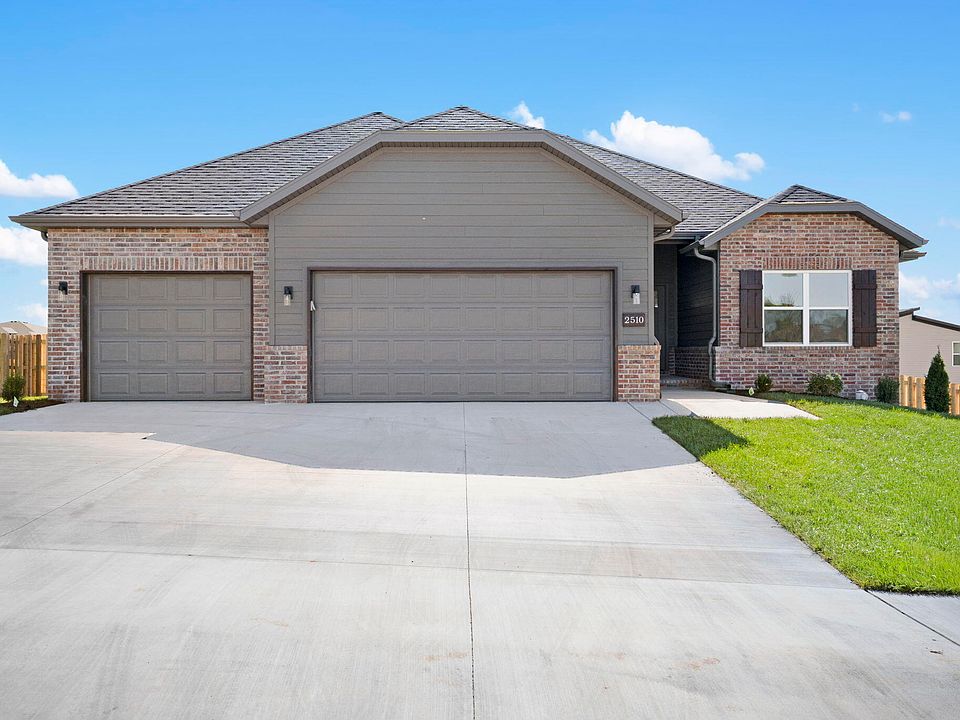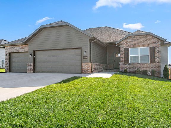Beautiful new-construction home in Eagle Springs! This gorgeous 4 bed, 2 bath, 3-car garage home sits in the sought-after Eagle Springs subdivision in Ozark. Tucked away in a welcoming neighborhood with a community outdoor pool, yet just minutes to shopping, dining, and Highway 65 for an easy commute to Springfield. Located in the Ozark School District.Inside, you'll find a comforting layout featuring luxury vinyl plank flooring throughout the main living areas, tile in the bathrooms, and plush carpet in all bedrooms for added comfort. The spacious master suite includes a walk-in shower, walk-in closet, and a beautifully finished bathroom.The heart of the home is the open-concept kitchen and living area. Featuring: granite countertops, custom cabinetry, a large island, pantry, and abundant natural light. Cozy up by the modern built-in electric fireplace in the living room and enjoy the built-in sound system.Outside, enjoy a fully fenced backyard, covered deck, and complete sod and irrigation; making this home truly move in ready.