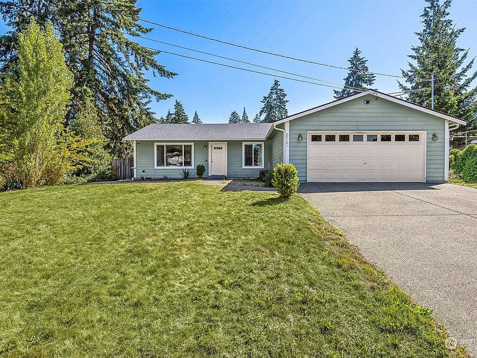 Welcome to this inviting 3-bed, 2-bath rambler in the Graham community W/NO HOA! Featuring a spacious living room W/vaulted ceilings & bright dining space W/skylights! This property boasts numerous upgrades, including new roof & water heater (W/Exp tank) inst. 2018. Enjoy the cozy ambiance provided by the added pellet stove (2021). Open kitchen offering a large island W/bar-height seating, High Def. laminate counters, SS apps. that stay, & plenty of cabinetry for all your storage needs. Fresh paint & new carpet in the 3 bedrooms, including a guest room ft. custom shiplap wall. The home is fully fenced & offers RV parking! Garage is equipped W/built-in shelving that stays! Don't miss the opportunity to own this beautifully maintained home!