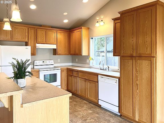 Single level, quality construction, move in ready, private 2005 Bruce Wiechert 3 bed 2 bath home in an established quiet neighborhood. Located near the end of a dead end street on a panhandle lot, home is well insulated from street traffic and has an oversized concrete driveway and RV parking! Sparkling clean newly painted interior and garage using quality Sherwin Williams paint, new high end Cali Vinyl Northshore Oak extra wide longboard luxury vinyl plank floors, freshly installed carpeting in hallway and bedrooms, with slat blind window coverings professionally cleaned. Large windows and vaulted ceilings flood the space with light, ample walk-in closet in the primary bedroom and double sink vanity!!! Excellent floor plan and use of space. Veneta has a lovely small town feel with excellent amenities, only 15 minutes West of Eugene, 10 minutes from Eugene airport, nestled between the gorgeous Oregon coast and the majestic Cascades. Positioned near Fern Ridge lake and directly in the heart of wine country, commuters will enjoy a lovely drive to and from home while soaking in the beauty of the Pacific Northwest. Veneta is experiencing high levels of new construction happening in both residentially and commercially, resulting in surpluses for the local schools and community. Recent and coming soon additions: newly constructed pickle ball courts and dog park, park improvements, Bolton Hill sports complex, Veneta Elementary new gymnasium, Elmira High School exterior sporting field expansions and renovations, several new housing communities under construction, ample commercial development bringing new businesses to the area, phase I of Hwy 126 widening, day care centers with availability at lower price points than many metros, after school and summer student programs. Invest in construction that will stand the test of time and ride the appreciation wave as the community grows in value around you!