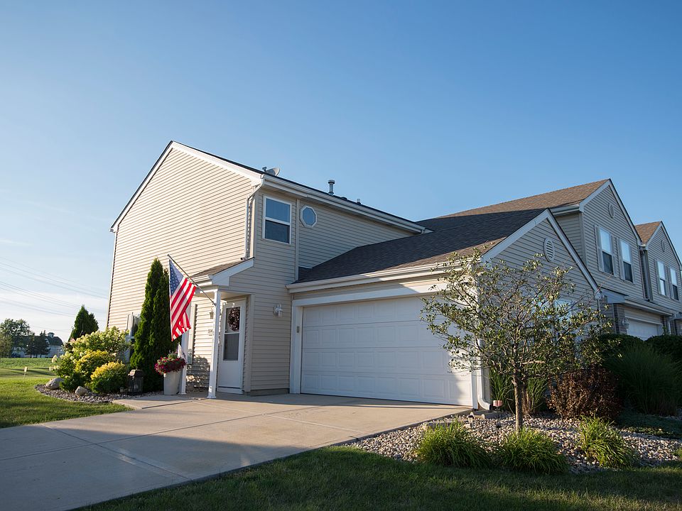 Immaculate 2 bedroom, 2 story end unit on large corner lot with an extended driveway. Best lot in the subdivision with spacious backyard. Large 19x13 living room with sliding door to extended patio and huge back yard. Eat-in kitchen features island and stone tile floor. All appliances stay. 12x16 master bedroom with walk-in closet. 2nd floor laundry. 2 car attached garage. NEW ROOF!