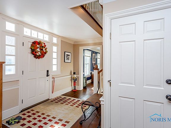 A true colonial beauty nestled on 3 gorgeous acres features newly redone tennis ct. & stunning view of river. Privacy abounds yet minutes from Waterville & a short ride to Perrysburg. Kit boasts a culinary delight w/WOLF dual fuel 6 gas burner stove, grill & elect self cleaning oven, built-in micro drawer, stone counters, lime stone flr, cherry cabinets, sub zero fridge & freezer. Gorgeous primary bed with huge bay overlooks water. Primary bath has newer granite, walk-in closet, glass shower doors, deep tub. Roof new in 2024 & so much more. You'll fall in love so don't wait on this one.