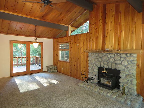 Nestled in the forest in upper Fern Valley, this immaculate 2 bedroom/1 bath cabin offers the ultimate in cozy living, with open, high-ceilinged living area, rock fireplace, efficient kitchen, spacious, bright bedrooms and warm, rich interior pine siding. Enjoy outdoor living while watching the sun rise on your front deck or while it's setting on your large back deck. Immaculate landscaped front and back yards offer domains for wildlife to enjoy. All sorts of improvements have been made, including dual glazed windows, efficient wood stove insert, new carpet, beautiful landscaping, irrigation/catchment systems and more! Add a real live playhouse and several storage sheds plus that you are a stroll to the hiking trails and a downhill jaunt to town and you have the perfect cabin get away or full time abode!