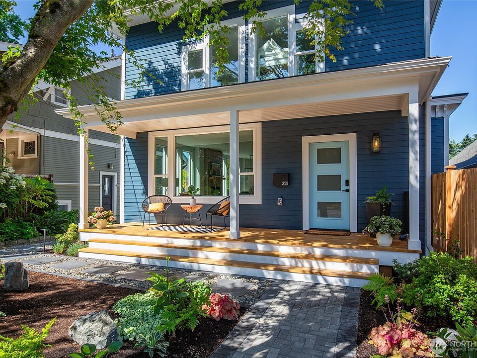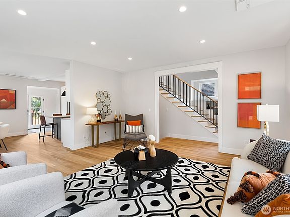 Serenity. A re-imagined 4-level classic QA home. A custom build showcasing expertise in sustainable construction & design: modern & clean w/architectural integrity & soul. Natural light graces white oak floors, designer tile & cabinetry. Chef’s kitchen: Bertazzoni appliances & a grand island. 4 beds + flex room + 2 more for spreading out. 3 bedrooms (relaxing primary suite) upstairs. Next level: vaulted space for WFH/media/play/gym, etc. Garden suite: 4th bed, 2nd kitchen + den; use for life or income. Fenced yard (4,800sf street-to-alley lot) w/grass & patio. Enjoy 3 car off-street parking or build permitted garage/DADU! Moments to Rodgers Park & Queen Anne Ave: restaurants, shops & calm hometown vibes. Car charger + Solar being installed.