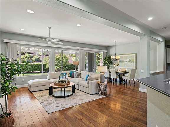 Fantastic 'Napa' backing to open space! this home is in wonderful condition with many desirable upgrades. White cabinets and solid counters. Beautiful hardwood floors. Popular great room floorplan that is great for entertaining. Well sized primary suite with separate tub and shower. Private guest suite. Large den with custom built ins. Mature landscape front and rear. Extended rear patio and large covered front porch. Three car garage with storage. Great sun orientation and low cost solar lease. Don't miss the attached video of this immaculate home with drone views!