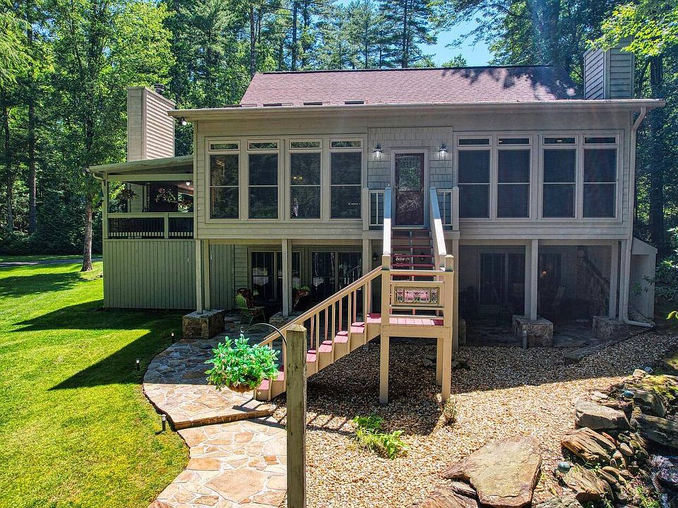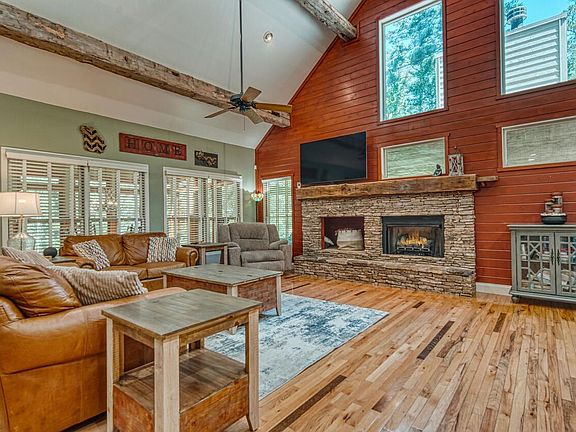 Not your average Mountain Cabin! This custom built upscale 3BR,3.5BA 4 fireplace cabin features upgrades everywhere, abundant outdoor living areas & location in one of the areas top Communities.There is a perfect Master Suite on main, open kitchen, large great room with Majestic stone fireplace, beautiful sun room, office, large 2nd floor guest suite, laundry room & terrace level with 3rd ensuite BR, den/media room and storage. Outdoor features include, 2 covered decks, hot tub, stone patio, firepit area & koi pond with waterfall. This home has Hi-Speed Fiber Optics, a 2 car garage with workshop/storage, a rare level manicured lawn, concrete drive with plus parking & 1.54 parklike acres making this splendid cabin one of areas best quality values.