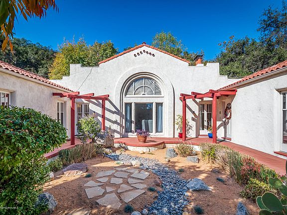 Amazing opportunity to own and refurbish this 1924 Spanish Mission Revival home in serene Woodlands neighborhood. Expansive 1.5 acre property is your own wooded wonderland with quiet privacy, and surrounded by mature trees and plantings that allow you to enjoy each season. The unique design of this architectural gem surrounds a courtyard and opens out through numerous French doors. High ceilings throughout give an airy feel. Stunning living room has Batchelder tile fireplace, built-in bookcases and vaulted ceiling. Formal dining room has leaded glass skylight and built-ins. Family room has fireplace with built-in bookcases. Bedrooms have walk-in closets with built-ins. Two of the three bathrooms are oversized and have hex tile floors and subway tile. Spacious kitchen has tremendous storage, work-space and breakfast area. Laundry room has terrific storage, too. Two-car detached garage has apartment above with kitchen and full bath. The gorgeous grounds are filled with California native plants, some indigenous and some planted. Oak and sycamore, elderberry and sage, agave and native grasses grace this expansive one-of-a-kind property, enjoyed by the local wildlife as much as the occupants.