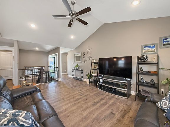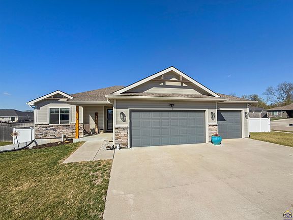 Better than new, this stunning 4-bedroom, 3-bathroom home offers an open floor plan with modern finishes. Nestled on a quiet cul-de-sac in a peaceful neighborhood, you'll love the established yard with a white vinyl privacy fence. Designed with savings in mind, the solar panels drastically reduce utility costs—averaging just $38/month for electricity (per Evergy) and $39/month for gas (per KS Gas Service). The finished basement expands your living space with a large family room, two additional bedrooms, a full bath, and a generous storage room, providing ample space for all your storage needs or room for growth. Convenience is key with a spacious main-floor laundry room and a three-car garage perfect for vehicles, hobbies, and extra storage. Located just minutes from Lake Shawnee, this energy-efficient home offers both tranquility and accessibility. Don't miss your chance to call this beautiful home yours—schedule your showing today!