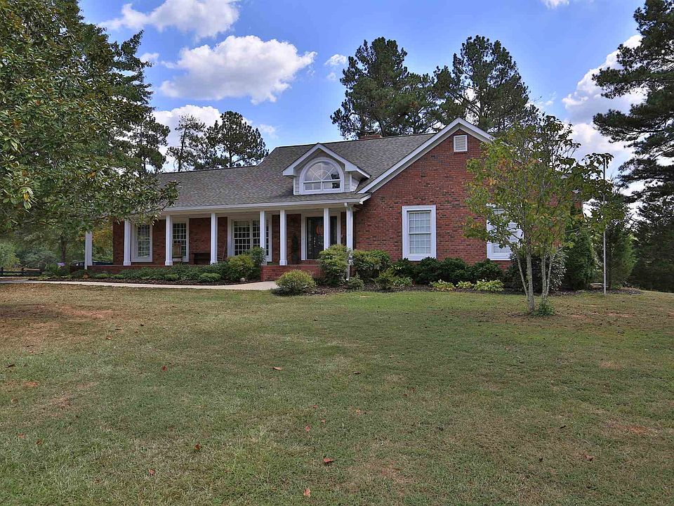 If you are searching for room for you and your horses, this is the place! Beautiful 4 sided brick ranch featuring large open area. Extra large bedroom and en-suite bath with double vanity, granite counters and tiled shower, laundry room and over sized closet. Second oversized bedroom features en-suite bath with double vanity and shower/tub combo and large closet. Kitchen features granite countertops. Hook up for additional washer/dryer available. Partially finished basement. Covered porch and large two level deck. Fenced pasture, creek, barn with hay loft, stalls, shop area, and covered equipment storage shed. Roof, water heater and one hvac recently replaced. Close to shopping and dining! Additional land available!