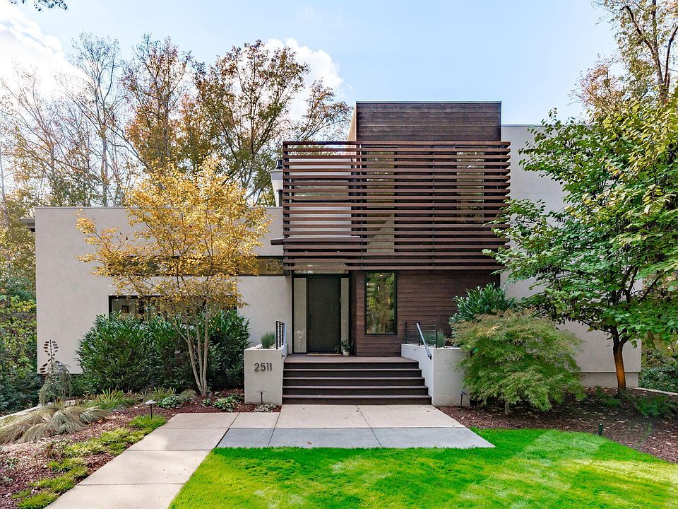 Modern architecture at its most inspired. This extraordinary residence, designed by renowned architect Louis Cherry and refined by a celebrated interior designer, redefines what modern living can be. Every surface, sightline, and material choice tells a story of artistry, precision, and balance. Set across three levels, the home offers 5 bedrooms, 4.5 baths, and a seamless integration of interior and exterior spaces all conceived to maximize light, flow, and connection to nature. The exterior blends stucco and concrete with warm Brazilian wood accents, creating striking curb appeal and timeless modern character. Step through the front door, and you're greeted by sweeping ceilings with exposed hardwood beams, walls of glass that draw in natural light, and a palette of sustainably sourced materials chosen for beauty and longevity. Custom millwork defines every room. Built-in cabinetry, architectural shelving, and thoughtfully concealed storage that makes every space feel intentional and serene. The main level is anchored by a stunning chef's kitchen outfitted with Thermador appliances, dual dishwashers, expansive quartz surfaces, and bespoke cabinetry. It flows seamlessly to the screened porch and Brazilian wood deck, extending the living space outward and capturing the lush privacy of the backyard. Also on the main level you will find the primary suite which is a true retreat featuring a private balcony overlooking the trees, heated floors in the spa-inspired bath, and large windows that frame the natural surroundings. Upstairs, a loft lounge offers a flexible space for reading, relaxing, or hanging out. Three additional bedrooms are found on the upstairs level, one with an ensuite bathroom and two which share a Jack and Jill bath. Downstairs, the lower level provides even more flexibility and space to relax. This area is perfectly set up as a media room, replete with a bar area featuring a built-in wine fridge. The lower level also offers a guest room and full bath with heated floors, easy access to the covered patio, and views of the gorgeous, private backyard. Every aspect of this home reflects craftsmanship and intention, from the placement of each window to the precision of every built-in. Natural light transforms throughout the day, animating textures and surfaces in a way that feels alive and ever-changing. This is truly more than a house, it's a living work of art.