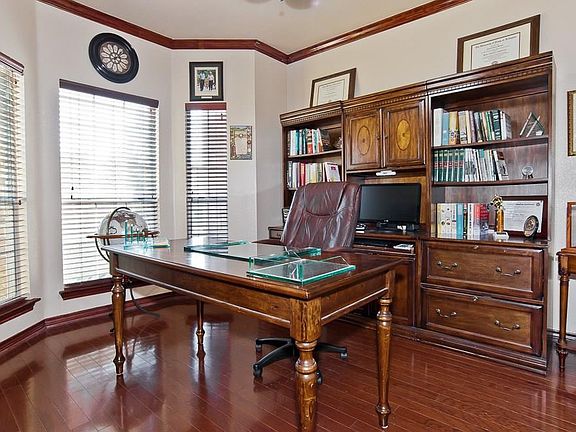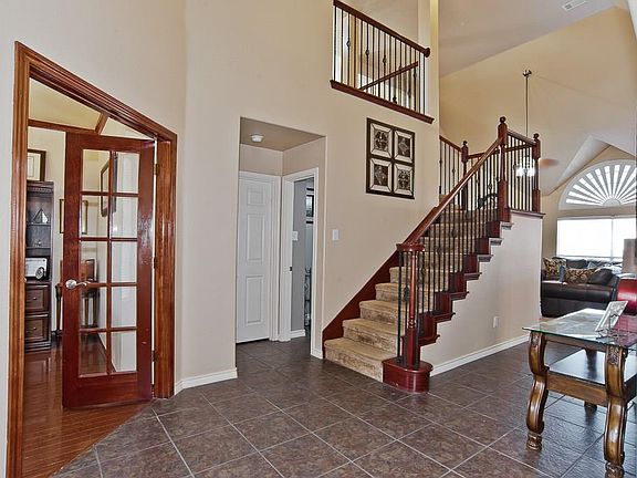 Upon entry you are greeted by a large foyer with tall ceilings. This floor plan features an open concept combining the family room, kitchen and breakfast area. Enjoy views of the large backyard and over sized patio from the family room and breakfast area. Other features include crown molding, detailed kitchen cabinets with designer tile backsplash, vaulted and tall ceilings, designer light fixtures, 2 inch blinds throughout, arched walkways, a wrought iron staircase and much more!! Located close to restaurants, retail and the highly desirable Mansfield High School.