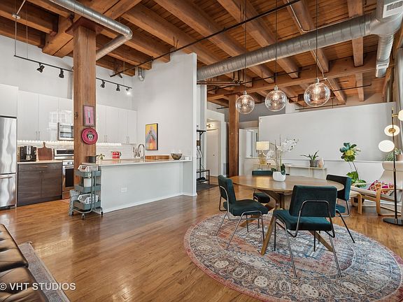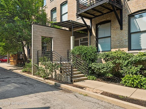 Gorgeous, light filled Logan Square rehabbed 3bed/2.5 bath CORNER unit loft located on quiet tree lined Moffat Street This spacious 2200sqft high first floor duplex down lives like a single family home with three large bedrooms and two living spaces! Every kitchen appliance has been updated, as well as new washer/dryer and HVAC. This is better than new construction! Exposed brick walls, soaring 14' ceilings, and elegant timber beams, floor to ceiling windows with $12,000 of custom drapery, gas fireplace, and original timber accents give this home all the charm and character you could dream of! The Main floor of living has a huge open living/dining combo with a completely gutted kitchen featuring new modern cabinets, white subway tile backsplash, stainless steel Kitchen Aid appliances, and quartz counters. Large dining area off kitchen is perfect for entertaining and can fit a 12 person table! Powder room and the Primary bedroom and bathroom are also located on main floor. The primary bedroom is large with floor to ceiling windows, custom window treatments, organized walk-in closet, and gutted master bath with new dual vanity sink, separate shower and soaking tub with subway tile and stone honeycomb flooring. Upgraded Nest thermostat and custom lighting throughout the home from West Elm! Lower level has two large bedrooms and second living space perfect for a play room, office or family room as well as a Full bath, laundry room with front load washer/dryer and tons of storage downstairs. Gated secured parking and large storage unit in basement included! Common roof deck to enjoy the outside, which you can access using the elevator in the building and store your bikes in the bike room. This is a truly spectacular home! Located seconds from the 606 and Western Blue line stop. This booming location doesn't get better than this - half a block away from Lucy Flower Park, Maplewood Park and several chic new coffee shops.
