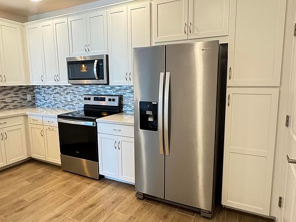 The kitchen icludes white maple cabinets paired with an elegant glass backsplash which compliments the contemporary quartz countertops. Stainless Steel appliances, washer/dryer with built in cabinetry, Soft Water system and R/O drinking water filtration.