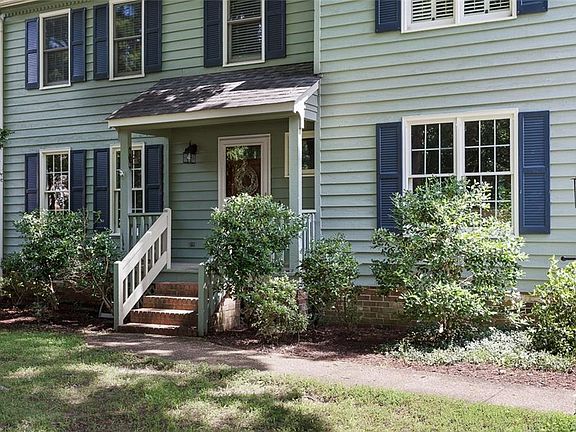 This wonderful 4 bedroom home is nicely situated on a private cul de sac lot. The first level features hardwood floors and crown molding in the formal living room and dining room, a spacious family room with fireplace, ceiling fan, recessed lighting, and built in bookcases; and a large eat-in kitchen with stainless steel appliances, glass tile back splash, recessed lighting, 2 pantries, crown molding, and an island with a granite counter top. A breakfast nook, half bath, foyer with slate tile, and laundry room complete the first level. The second level has 4 bedrooms and two full baths including a generous size master bedroom with walk in closet, ceiling fan, and plantation shutters. A freshly painted exterior, walk up attic, garage, and a detached storage shed complete this lovely Brandermill home. Conveniently located and walking distance to Swift Creek Elementary School and St. Ledger's pool.