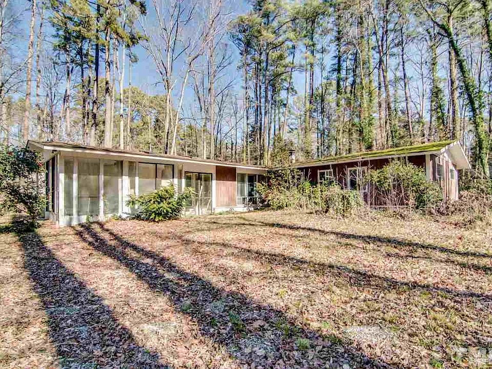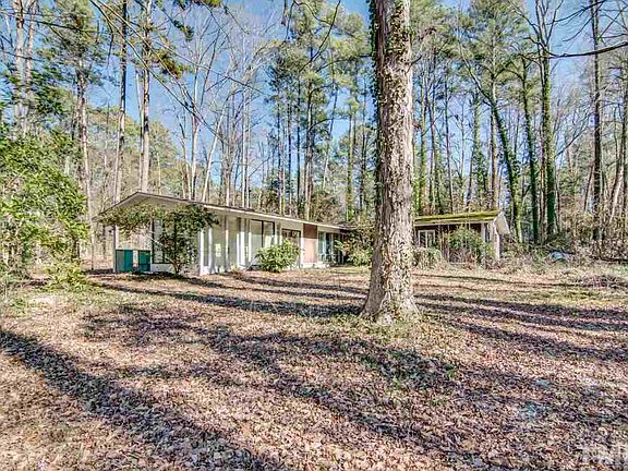 Mid-Century Home custom-built by Duke Prof. in 1955. Sits on a private, wooded, 1.6 acre lot. at the end of road. Renovations are needed. Needs a whole kitchen (no appliances there, Master bath needs full redo.) f you like to do your own work or can see the "vision" of this home restored, come take a look. Has 4 bedrooms, living room, family room w/fireplace plus a sun room. Lots of glass windows. It has a Septic Tank. Being Sold "As Is" Seller Is Taking Back-up Offers.