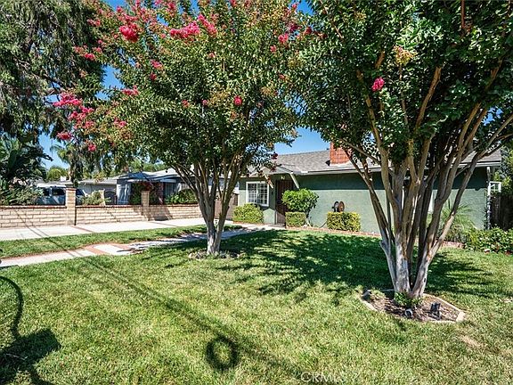Charming Single-Story Home on a Gated Lot with Upgrades Throughout! Come and see this beautifully updated single-story home featuring a fully fenced, grassy front yard that sets the tone for the warm character inside. Step into the inviting living room, highlighted by a custom curved brick fireplace with a raised hearth, crown molding, plantation shutters, and a ceiling fan—creating the perfect cozy retreat. The recently remodeled kitchen is a true standout, boasting butcher block counters, a white tile backsplash, a farmhouse sink with prep station, and sleek LG appliances (all under one year old!). An oversized dining area offers space for gatherings and includes a laundry closet with washer/dryer (both under 2 years old), a utility sink, and direct access to the backyard. Recessed lighting enhances the hallway leading to the bedrooms. The expansive primary suite is a true showpiece, featuring a large walk-in closet plus an additional closet, ceiling fan, and its very own raised brick hearth with a wood-burning heater—a striking focal point that adds both charm and warmth to the room. Sliding doors open to the backyard, while the ensuite bath has been tastefully upgraded with a step-in shower and custom tile mural. The secondary bedroom includes mirrored closet doors with built-ins, ceiling fan, and newer laminate flooring. The remodeled hall bath completes the interior with modern tile finishes. This home is also enhanced with smart features, including LED lighting throughout, a Nest thermostat, digital garage door controls, video doorbell, smart sprinkler system, and exterior lighting that can all be managed at the touch of a button. Step outside to a lush backyard retreat with producing cherry, pomegranate, and plum trees, a custom stone bar with built-in seating and BBQ, and a covered patio for year-round enjoyment. Multiple storage sheds, an extra-long driveway, and a detached oversized 2-car garage with 240V wiring provide abundant storage and functionality. Additional highlights include copper plumbing, water heater & HVAC system under 10 years old, and no HOA or Mello Roos. Conveniently located near shopping and freeway access for an easy commute.