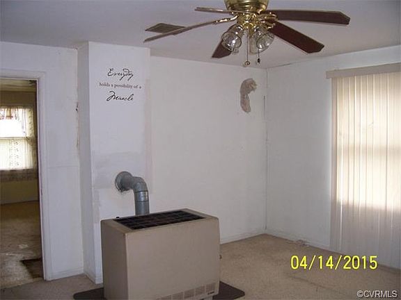 Spacious farmhouse located on 10 acres in Dinwiddie County. Downstairs with living room, eat in kitchen, bonus room with attached 1/2 bath. Upstairs with 3 bedrooms with pine floors and full bath.