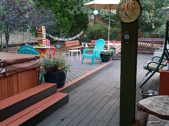 You will know you are home when you step into this well maintained home for sale in Idyllwild Ca, boasting over 1800 square feet and master bedrooms on both floors, the upper master suite has over 600 square feet of space including a separate workout room and large master bathroom with dual copper sinks. The main level includes another large master bedroom with a 3/4 bath. Living room has vaulted ceilings and a large floor to ceiling brick fireplace with propane insert. The kitchen and dining area opens to the living room, new appliances include ovens and dishwasher. The outside space is amazing, ample decking in both front and back, nice entertaining area out back with jacuzzi and BBQ area. Oversized two car garage with workshop, cement tile roof is sure to last for years to come. You must see to appreciate this unique mountain home in Idyllwild. Close to hiking trails, mountain biking areas and a short drive to the town of Idyllwild with great restaurants and shops.
