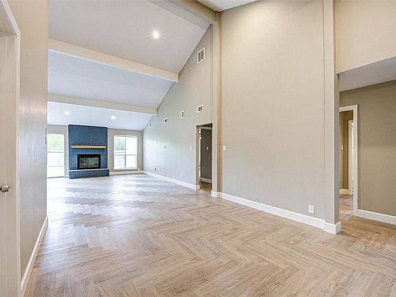 Light & bright, newly renovated 1-story cul-de-sac home. Open-concept floorplan offers flexible living space. Natural light flows into the Family Room w/ soaring vaulted ceilings, a floor-to-ceiling grey brick fireplace, an inset bar with shelves, recessed lights & sliding glass patio doors opening to the spacious backyard. Kitchen features an island w/ a cooktop, granite countertops & a stainless & black refrigerator. Breakfast Room has a modern chandelier & French Doors leading opening to the covered patio. Primary Bedroom w/ En Suite Bathroom features dual sinks, beautiful tiled walk-in shower & dual walk-in closets. Neutral tones, Herringbone Luxury Vinyl floors, ceiling fans, upgraded lighting & window blinds throughout. Wonderful outdoor living w/ a shaded covered patio, extended patio pad & spacious backyard. Guests will be welcomed by a shady covered entry & have plenty of parking in the long driveway. Community clubhouse, pool, tennis courts& playground. Roof replaced 2022.