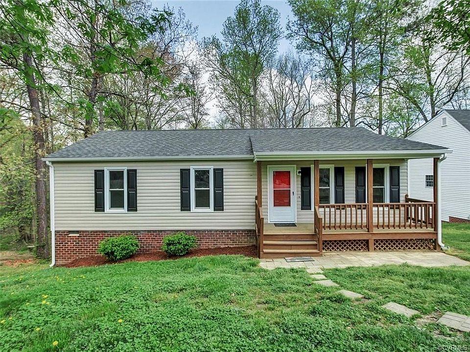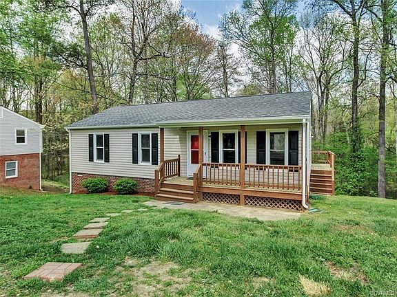 Updated, like brand new rancher on almost one half acre. New roof, new vinyl siding, new inside flooring, new appliances, new replacement windows, and freshly painted inside. Heat pump central air with electric baseboard backup. Covered front porch and rear deck. Great Chesterfield County schools. Close to shopping, restaurants and interstates.