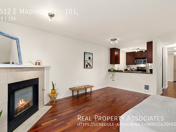 Charming ground-level condo featuring a spacious 1 bedroom and 1 bathroom, complete with a private patio. One reserved parking spot in a secured garage. Nestled in a vibrant neighborhood, you'll be within walking distance of fantastic shops and restaurants in Capitol Hill and Madison Park, plus easy access to transit and the Microsoft Connector. The inviting kitchen boasts granite countertops and stainless steel appliances, seamlessly flowing into a cozy living room enhanced by a gas fireplace. Enjoy a roomy bedroom with a walk-in closet, in-unit laundry for convenience, and secure garage parking with one assigned space. Internet/ cable/ electricity is paid directly to the provider. Water/sewer/garbage/gas is included! 12-Month Lease Available Application $45 per person/adult. Pet possible with prior approval and additional (per pet) - $30 pet application fee - $300 refundable deposit and $35 monthly pet rent. Under 35lbs, No aggressive breeds. Renter's legal liability insurance is required and part of Benefit Package ($30 monthly). If qualifying legal liability insurance is purchased by tenant separately and proved, Benefit package is reduced to $15 monthly. This Community does not accept portal screening reports. Professionally Managed by Real Property Associates Reserved Parking Secured Garage Secured Parking Washer/Dryer