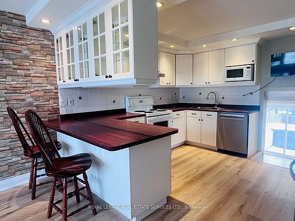 Fantastic semi detached home located on a child safe court in the sought after area of Clarkson. Great curb appeal withstone/brick exterior nestled on a large pie shaped lot. Family size kitchen/dining area with stainless steel fridge/dishwasher, pot lighting, ceramic backspalsh, breakfast bar, upper glass cabinetry, and California shutters. Main level bedroom with vinyl floors and mirrored closet. Living area with vinyl floors and walk-out to patio area. Two upper level bedrooms with broadloom and amain 4 piece bathroom. Tenant pay 60% of the utility Cost . 1 Garage Parking , 1 Driveway parking.