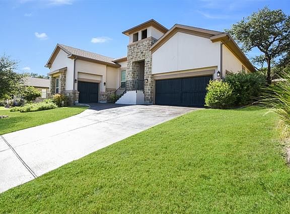 This stunning home in a gated community features 3 bedrooms (all down), 3.5 baths, open floor plan, gas log fireplace, gourmet kitchen w/center island breakfast bar, granite counters, double oven, 6 burner cook top w/griddle, & walk in pantry. It also has wood floors, coffered ceilings, crown molding, & a huge bonus/game room w/wet bar & full bathroom upstairs. Huge covered balcony off game room. Home is perfect for entertaining & holiday events! Substantially below appraisal! Backs to Emma Long park.