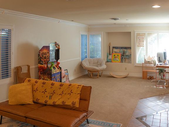 Private hot tubBuilt-in bookshelvesCustom cabinetryCustom tile flooringPlantation shutters