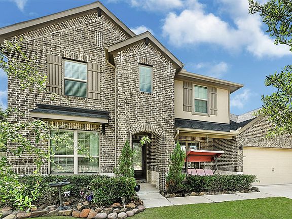 Welcome to this exquisite two-story DR Horton home with 5 bedrooms, 3.5 baths, and a 2-car garage. Equipped with energy-saving solar panels, the chef-inspired kitchen features stainless steel appliances, a spacious pantry, and a breakfast bar. The open-concept layout includes a family and dining area perfect for entertaining. The private owner's suite boasts a spa-like bath with dual vanities, soaking tub, shower, and walk-in closet. Upstairs, a versatile game room connects to three bedrooms and a full bath. Enjoy the covered patio for outdoor relaxation. Located in Friendswood ISD, this home offers luxury, comfort, and energy efficiency.