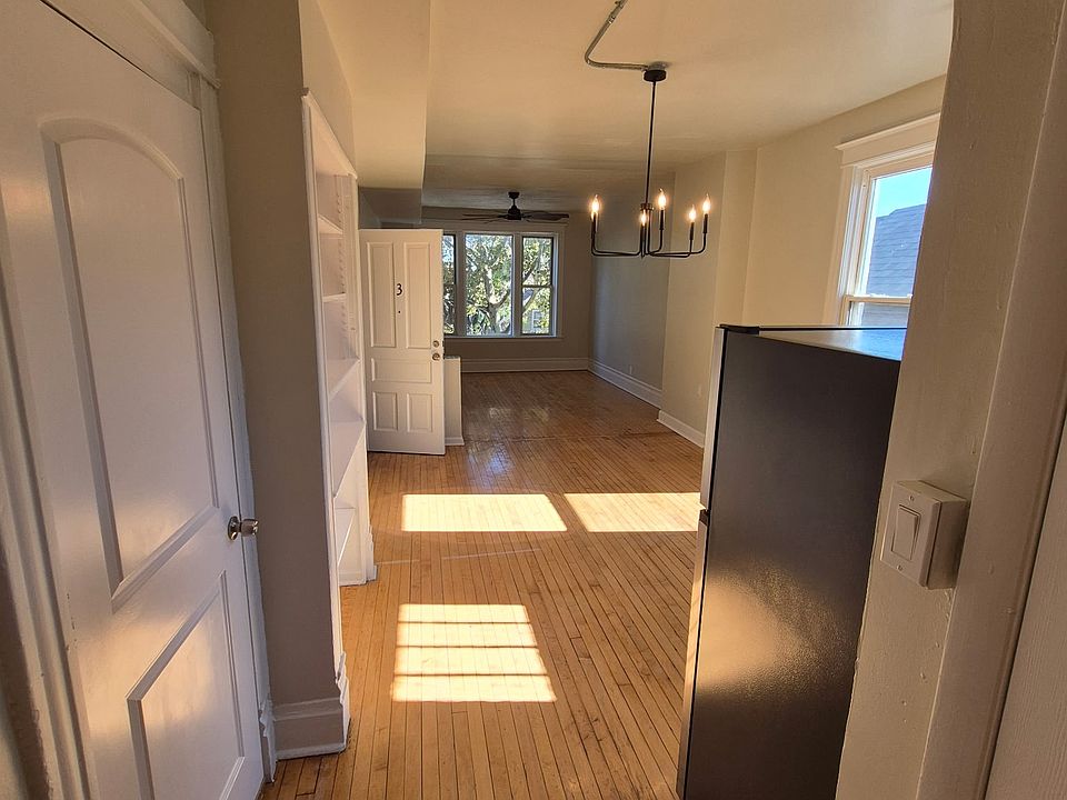 Step into this beautifully designed and newly renovated 2-bedroom, 1-bathroom apartment featuring a spacious open floor plan with 10-foot ceilings that create an airy and inviting atmosphere. The home boasts an original built-in, gleaming hardwood floors throughout and a fully updated kitchen complete with brand new, never-used stainless steel appliances a perfect blend of style and function.