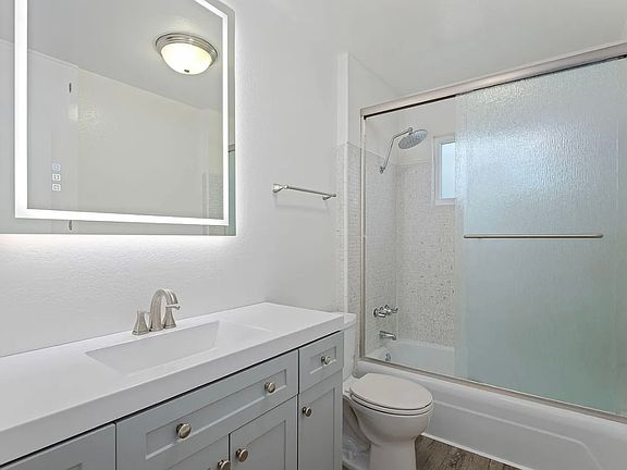 Modern fixturesFresh paintShared front yardCovered carportIn-unit laundry roomLaminate flooring