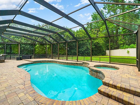 Welcome to this stunning 6-bedroom, 4-bathroom home with over 4,000 sq ft of beautifully maintained living space. Located in a sought-after community, this residence offers soaring vaulted ceilings, abundant natural light, and a spacious open layout perfect for entertaining and everyday living. The ground-level primary suite provides privacy and direct access to the screened-in pool and patio area—ideal for year-round enjoyment. The chef's kitchen features modern appliances, premium finishes, and generous counter space—all appliances and chandeliers convey. A dedicated man cave offers the perfect retreat, while a 3-car garage provides ample storage. With well-appointed guest rooms and flexible living areas, this home combines elegance, comfort, and convenience in one remarkable package. Don't miss the chance to experience it for yourself—schedule your private tour today. All information pertaining to the property is deemed reliable, but not guaranteed. Information to be verified by the Buyer. Be advised that cameras may exist recording audio and video inside/outside the property, such as ring doorbells. Photos are digitally enhanced and could be altered, please verify.