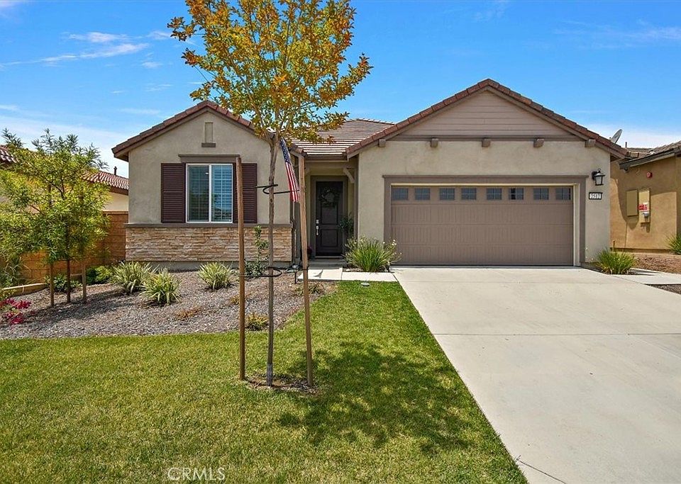 MOVE-IN READY! No need to wait for the builder! Come enjoy the CAREFREE-LIFESTYLE in this resort-like, single-story residence 2 model in the brand-new River Ranch Community at Summerbrooke in Rialto. This gorgeous model-like home with no rear neighbors has it all and awaits the new owner! Home features 2,091 square feet of living space, 4-bedroom option, 2 full bathrooms, open and bright living spaces, custom fireplace, casual dining area and a beautiful eat-in shaker-style kitchen w/ extra seating at island w/ quartz counters, upgraded cabinets, stainless appliances, pantry and direct slider access to the backyard. The primary bedroom wing offers an ensuite bathroom w/ dual sinks, glass enclosed walk-in shower, soaking tub, private water closet and a huge walk-in closet. Your guests will love the additional bedrooms and shared bathroom that is privately situated off the wide hallway on the opposite end. The private backyard is pet-friendly and complete with new hardscape. Other features include: 10 solar panels (assumable), wood-like laminate plank flooring, plantation shutters throughout, recessed lighting, indoor laundry room and an attached finished 2-car garage. Residents of River Ranch will have full access to the gorgeously designed recreational center: outdoor swimming pool & spa, tot lot, splash park, basketball court, outdoor entertaining areas, dog park and walking trails. Don't miss this opportunity to own this luxurious new home that's conveniently close to shopping, dining and entertainment at Renaissance Marketplace, and quick access to 210/215 & 15 freeways! Too much to list - A MUST SEE!