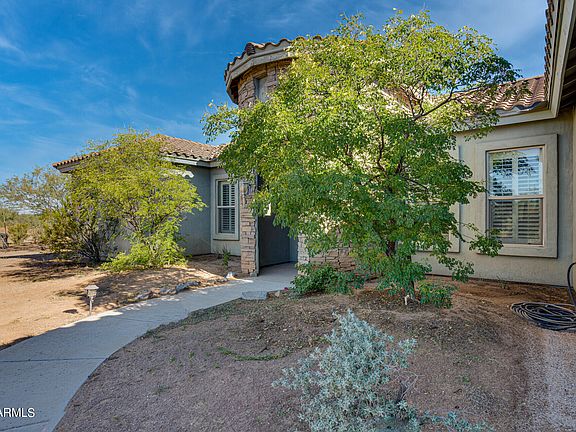 Custom home with many upgraded features. 24'' travertine tile, upgraded cabinets, granite counters, stainless steel appliances. Open concept with large great room, columns, 10' ceilings. Bathrooms/showers feature travertine tile. Large master suite with separate walk-in shower and jetted tub with a large walk-in closet, separate entrance. Stone accents and 14' turret entrance. Fenced-in garden area, window shutters throughout.