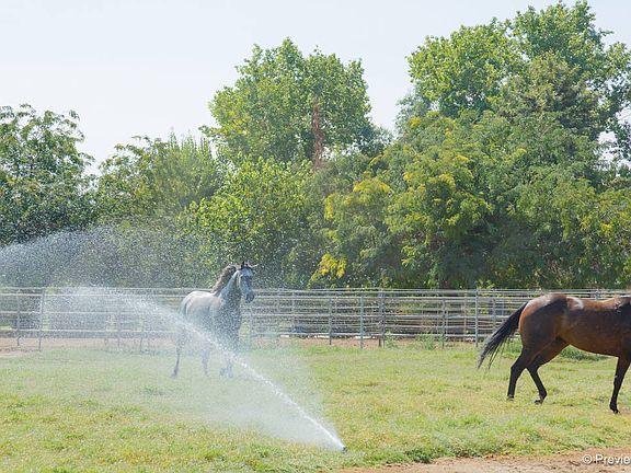 **** 4.77 Acre Horse Ranch with Pool & Spa **** This spacious single-story ranch home includes 2,906 square feet, 4 bedrooms, 2.5 baths and a 3 car garage. Fully fenced & cross-fenced with two Pastures along with a 100 ft. x 150 ft. riding arena all fully-integrated. Ranch facilities consist of (15)16 ft. x 24 ft. covered portable pens, 48 ft. round pen, hot walker, horse wash area, 2 grain bins, and a shedrow barn. The barn has 4 stalls, 2 tack rooms, office and a 20 ft. x 36 ft. breeze way shop area. Property has city water and city gas as well an Ag meter for the pastures, which keeps the yards green and the water bill at a minimum. Location in West Hemet gives you the closeness of local shopping yet the privacy of being in the country. If you are looking for a fully operational horse ranch and want to be close to town, this is the property to see.