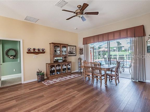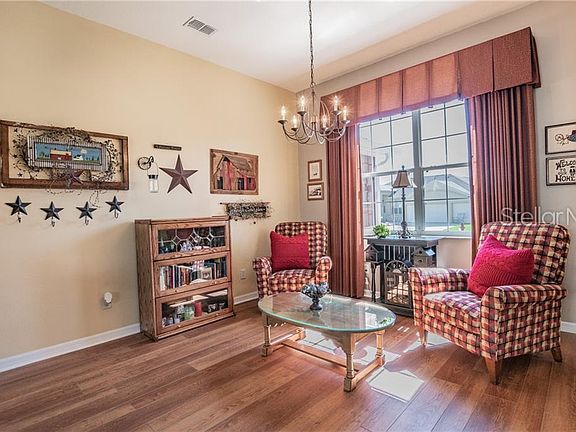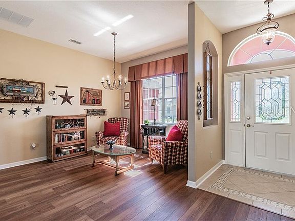 WELCOME HOME to your Private Oasis in this Gorgeous Pool Home located in the wonderful Active Adult, Gated, Golf Community of The Plantation at Leesburg. Relax in the sun or shade on your Screen Enclosed Lanai listening to the sound of your Waterfall flowing into your Tropical Private Pool. Surrounded by Lush Landscaping, this Newly Painted home provides an Open & Split floor plan, high ceilings, newly installed wood-look laminate flooring, tons of light & plenty of space to entertain. Spacious kitchen offers 42" high Honey Maple cabinets, Corian counters, Breakfast Bar with ave sink, Stainless Steel appliances, Recessed ceiling lights & pendant lights, & tons of storage! Kitchen is open to the Dinette and Family Room so the cook is always a part of the conversation! The Office/Den with French Doors is just off the Family Room and could be a 3rd Bedroom. Living Room/Dining Room combo is Open and Bright with a view of the pool/lanai. Spacious Master Suite offers a door to the pool/lanai, huge walk-in closet, dual raised and split vanities, soaking tub & walk-in glass shower. 2nd Bedroom & Guest Bathroom are in the rear of the home, providing privacy for guests. 2-1/2 car garage with Golf Cart garage is perfect for your needs. The Lifestyle You Deserve includes (2) 18-hole golf courses, 3 Community Pools with Jacuzzis, On site Restaurant, Serene Lakes, World Class Fitness, Lighted tennis courts, Bocce Ball, Pickle Ball, Clubhouses, Fishing Pier & over 100 weekly planned activities. FHA Assumable-3.75%!