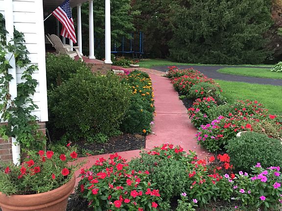 Priced to Sell! Beautiful 4BR home on 2.4 acres w/ scenic views! Spacious living/great room with grand fireplace & gleaming wood floors thru-out! Separate DR, rich cherry cabinetry & SS apps in eat-in KIT. Attach sunroom w/ bright windows & door out to luscious trellis & patio. Full MBR w/ full bath & WIC. Red barn/storage bldg. Across from perm farmland. Home Warranty incl. WELCOME HOME!