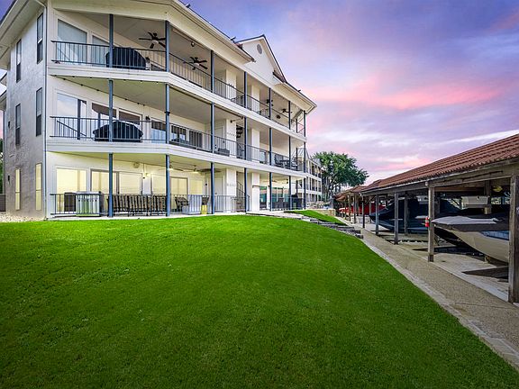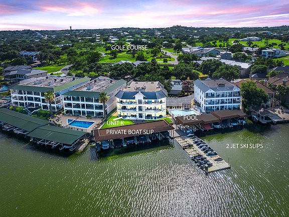 Calling all boating enthusiasts! No marina or trailer needed! Don’t miss your chance to own a true lock & leave condo with low monthly HOA fees right on the water on constant level Lake LBJ. Simply walk out the back door of your ground floor unit, and you are mere steps away from the water. Included are your very own boat slip & 2 jet ski slips. Most Texas hill country lakes are not constant level, so there can be a hike down to the water. That makes this getaway a true gem of a property! Peacefully at the end of a quiet cul de sac, this part of the water is also very calm compared to other areas on this popular lake. With 3 bedrooms and 2 baths, this fully updated beauty with an open layout offers plenty of space for unwinding with family & friends. Included is a separate garage for you to store a golf cart, a vehicle, or any water toys you like! Horseshoe Bay Resort is just around the corner with amenities galore & access to multiple, award-winning golf courses, with an option to purchase a membership there as well. This complex has only 12 total units, with a new metal roof along with a pool area that has been refinished & updated. Almost completed are the brand new boat lifts and jet ski slips! Asking price includes fees associated with this substantial renovation. The roof of the new boat house will be lifted to 15 feet, so views of the water will be even more expansive from your first floor unit. This laid back hill country retreat is the quintessential blend of comfort and luxury!