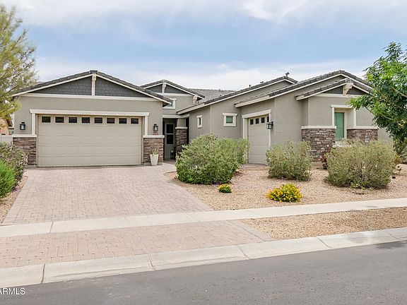 The best value in the Arbors! Constructed in 2019, this highly sought after 3,184 SqFt multi-gen floor plan allows for comfort & convenience. With plenty of space for entertaining indoors or outdoors with an attached guest house that includes a kitchen, patio, full bathroom, laundry & garage. As you enter the beautiful iron door, the heart of the home flows from the living area, to the kitchen & formal dining. With an office/den, powder room, oversized laundry, and prime layout. The primary suite includes an oversized rain shower, and access to the low maintenance, serene resort style backyard. The chefs kitchen includes high end GE Monogram appliances, an oversized island, pantry, and double ovens. This lush, gated community is conveniently near shopping, dining, hiking, golfing and more