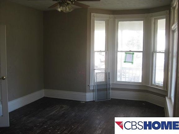 Large home with wrap around front porch, LR, DR, kitchen, parlor, office off the kitchen & 1 bath on the main floor, 4 BRs & 1 bath on the 2nd floor. Basement is unfinished with cellar door to the back and potential for additional finished space. Plus, there's an oversized 2 car garage in the back off the alley.